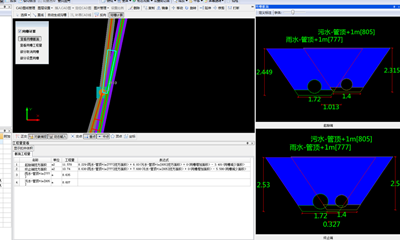 雨污水管道间距较小,存在放坡重叠和槽底重叠,实际施工为放坡重叠的下部一同开挖,加大了同槽计算难度