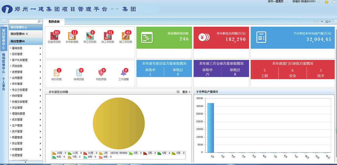 现有业务系统集成了 OA 办公系统、人力系统、项目管理系统、档案管理系统及系统手机终端等,构建了集团公司、子分公司(项目经理部)、项目多层级的平台业务管理框架。项目管理系统的建设与应用,还有效的促进了企业“标准化、信息化”两化融合。系统化的业务设计,网络化办公,极大的提升了业务处理效率,实现了项目全生命周期、全业务覆盖管理,实时反馈项目业务状态,有效的为相关管理人员提供决策支持。