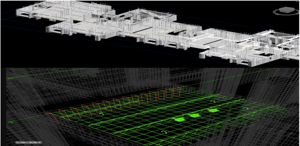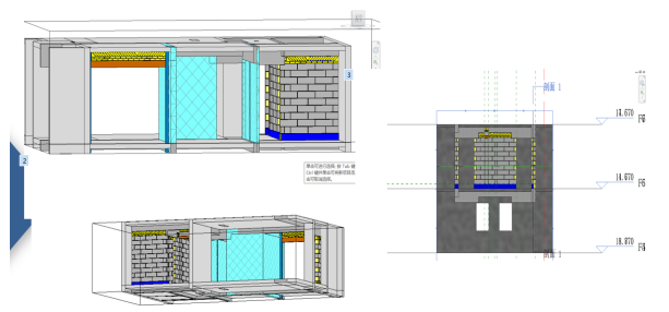 BIM应用难点:项目体量大,整体模型集成达到文件大,加之新工艺需要建族,BIM中心多次调整应用方案,最后采取分段的方式进行BIM的应用。