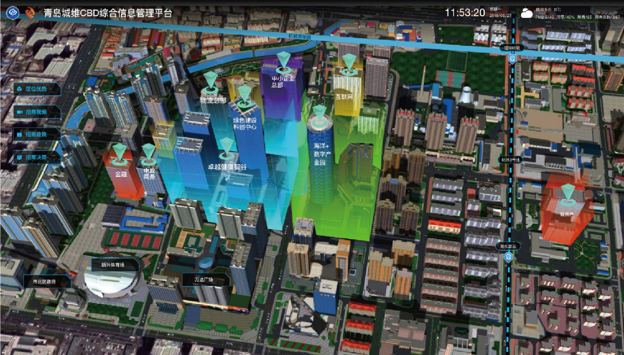 1)青岛市北区中央商务区人口、交通、产业、社会治理等城市发展管理日益复杂化,传统城市治理与运维发展模式不足以支撑未来城市的创新发展,迫切需要新的信息技术驱动发展活力,加快新旧动能转换,强化城市精准治理的新手段,提高城市治理新效率。