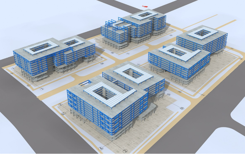 (1)运用BIM建模软件,建立项目建筑、结构(砼、钢结构)、暖通、给排水、电气、幕墙等多专业BIM模型,将二维图纸转化为三维可视化模型,用于后续的图纸校核、设计优化、施工节点深化和可视化技术交底。