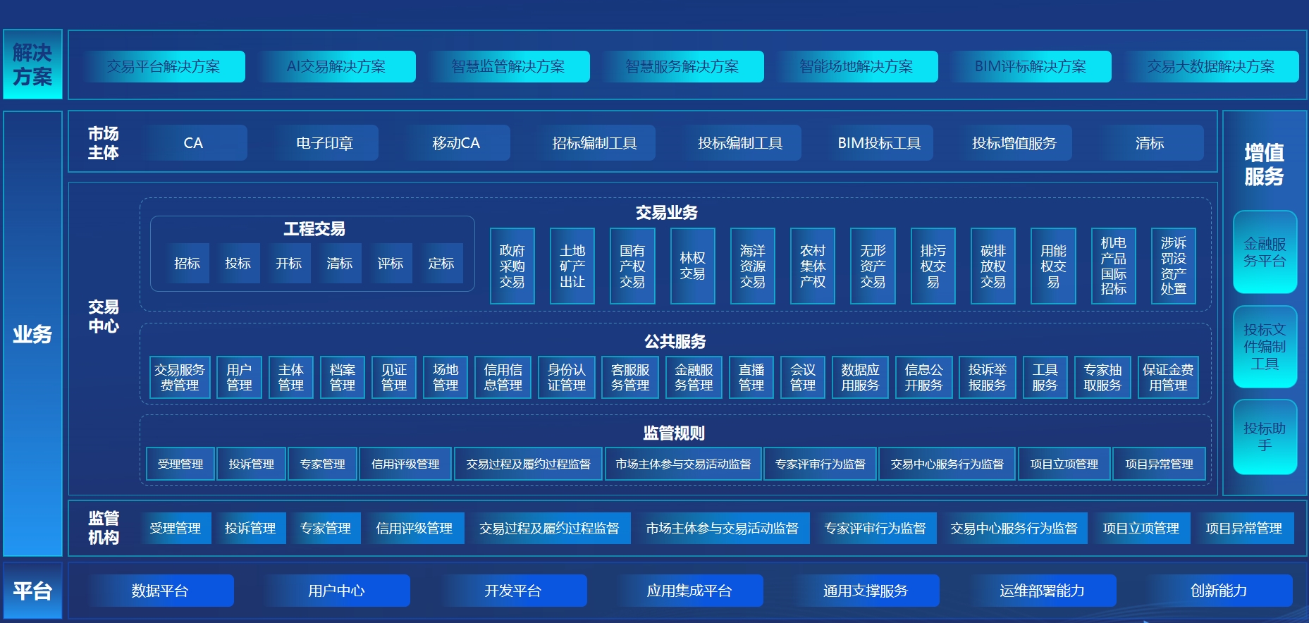 从公共资源交易三平台,BIM招投标,AI智能解决方案,到全省一张网,打造行业数字化智能体。